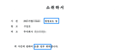 결국 원고는 법정에서 모든 소를 전부 취하하였습니다.