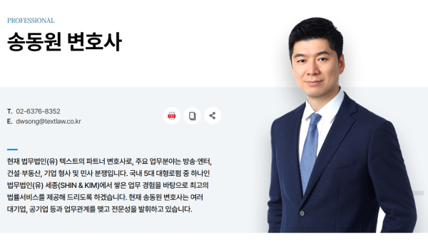 법무법인(유한)텍스트는 송동원 변호사의 SBS 시청자위원회 경험을 바탕으로 방송, 엔터 분야에서 고객에게 보다 높은 수준의 법률 서비스를 제공하고자 합니다.